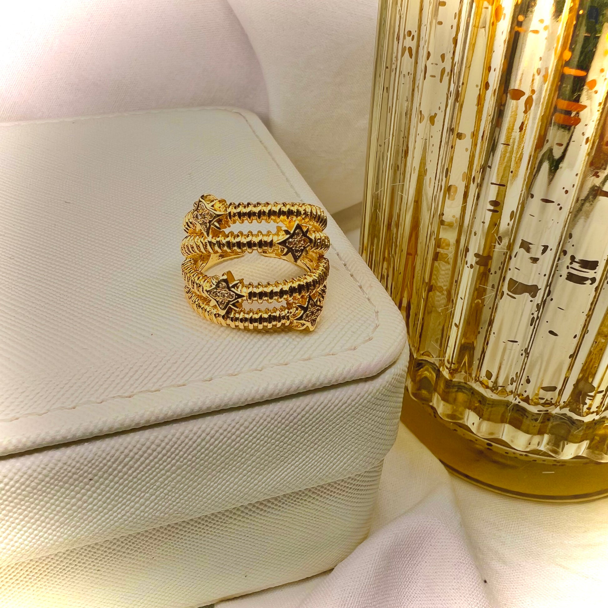Copper And Zirconia Starburst Ring 1.7 Size