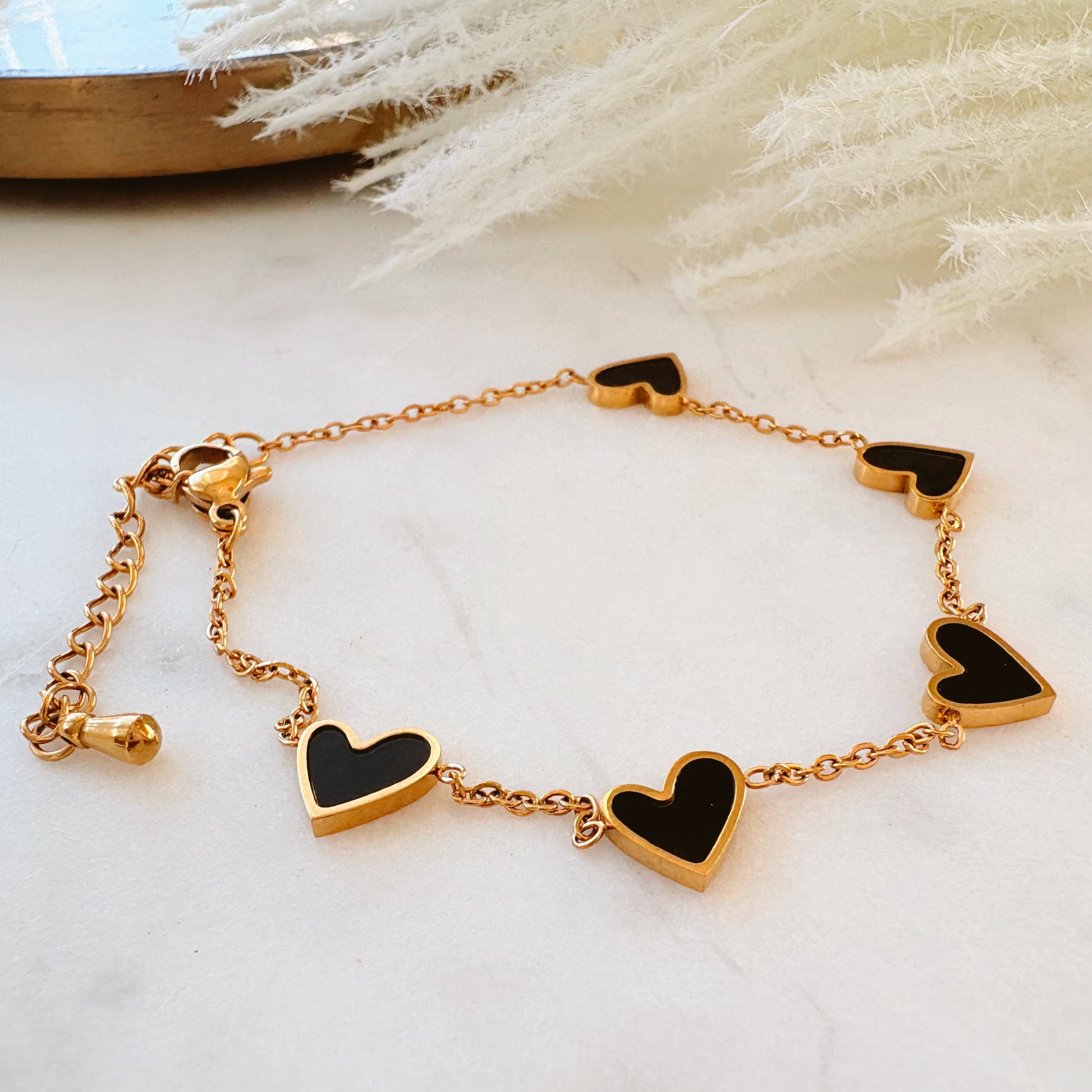 A delicate and feminine bracelet adorned with tiny black hearts — a symbol of deep, elegant love. Subtle and modern, it’s the perfect touch of mystery and romance for your everyday look.