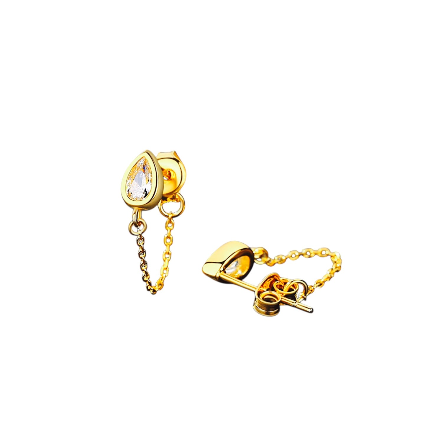 Elegant and modern, the Tear of Light Earrings combine timeless sparkle with a contemporary edge. Featuring a teardrop-cut zircon set in gold-plated 925 sterling silver and connected by a delicate chain, they bring a touch of sophistication and radiance to any look.